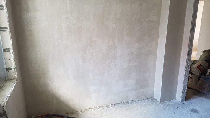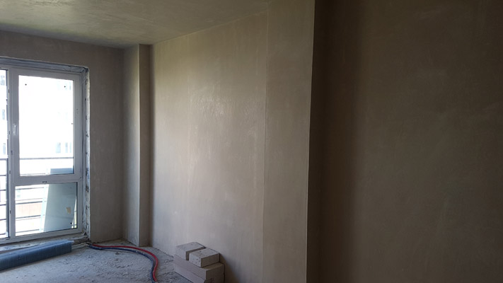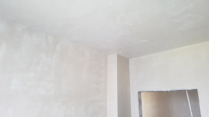 Заказчик дома поставил задачу выполнить стяжку пола и потолка. Общий объем 226 м2. Все сделали в срок 4 дня. Использовали гипсовую штукатурку Волма ГипсАктив белого цвета в помещениях с нормальным уровнем влажности воздуха, включая кухню, и цементно-песчаную штукатурку Старатели в ванной и санузле, в качестве штукатурки сомнений нет. Стены и потолок были с перепадами, но в итоге - все идеально ровные, сцепление с черновой поверхностью прочное.