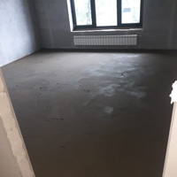 Стяжка выполнена в коттедже: 1 этаж - 105кв.м., высота 8мм, 2 этаж - 98кв.м., высота 9,5мм, балкон - 6,5кв.м., высота 10 мм. Длинна трассы: 100. Балкон залит под раму окна, а на втором этаже дома одна комната не заливалась. Общая стоимость стяжки - 40 000 руб. Из дополнительных работ был выполнен монтаж сетки на втором этаже. Стоимость сетки с укладкой - 15 000 руб.